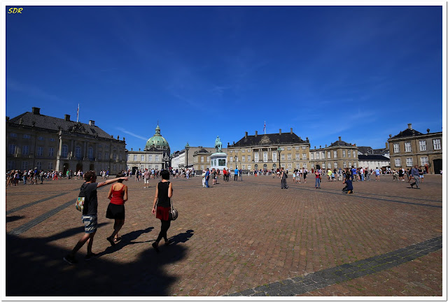 從玫瑰宮到皇宮(阿瑪林堡宮,Amalienborg),距離1.3公里,步行約15分鐘。所以,就練腿吧!在衛兵交接前30分,我們抵達了廣場等候。