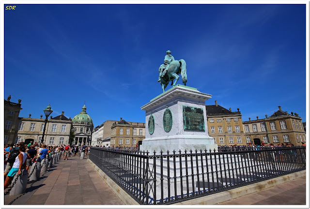 步行到皇宮途中,先經過斐特烈教堂(Frederik's Church)。教堂是巴洛克式建築,仿羅馬聖彼得大教堂造型建造,1894年完工,因主要石材為大理石,所以當地人都暱稱為「大理石教堂」(Marble Church)。我們經過時,它正在整修,不易取景,但近觀仍感氣派十足。