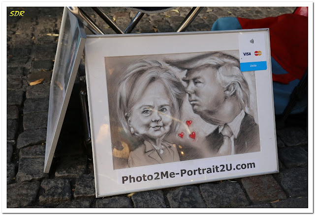 在斯托耶購物街漫步時,路邊有街頭畫家擺攤賣畫。這一張希拉蕊和川普的畫像頗為有趣,畫家在兩人之間添了象徵愛情的紅心,反諷美國大選兩人劍拔弩張、水火不容的敵意。我貼這篇文章時(2016.11.09下午15:50),恰好美國大選正在開票,川普已獲半數篤定入主白宮。這個結果,讓全球各地的眼鏡掉落一地。