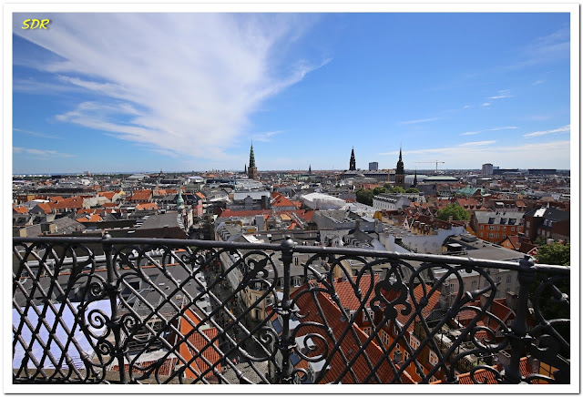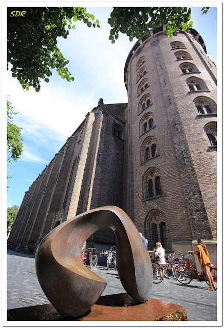 離開戲水池廣場後,幾步路就到了圓塔(Round Tower,丹麥文:Rundetårn)。圓塔建於17世紀,原先是天文台,可從一樓地面沿著斜坡繞圈直上-真的是斜坡,不是階梯,據說是當初設計給馬車行走的。到了頂樓,可以360度鳥瞰哥本哈根市區全景。另外,圓塔的四樓目前規劃為藝術展示中心,可以進去欣賞。