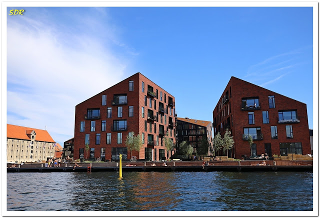 船隻駛近這棟灰黑色的建築,中間天井由鋼樑支撐並連接兩邊建築物,經由天橋可以互通,底層是可以停泊遊艇的船塢。這裡是哥本哈根的高級住宅區,原先是1954年建好的舊魚雷船廠。後來都更,透過建築師的巧思,竟搖身一變成為吸睛度也是100分的現代化建築。