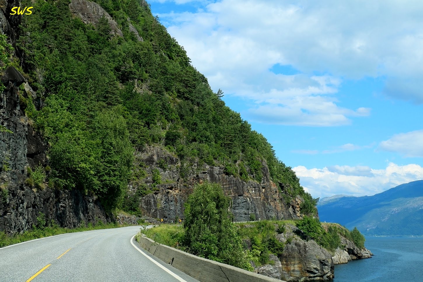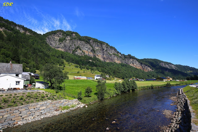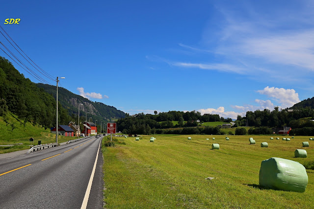 在抵達Steinsdalsfossen瀑布之前的這一段路,除一小段沿著峽灣前行外,基本上是屬於內陸路段,均為兩線道。路況良好,沿途風景優美,開起車來神清氣爽。
