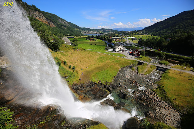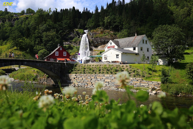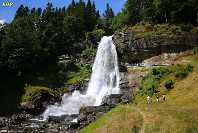 Steinsdalsfossen瀑布是哈丹格峽灣的著名景點,位於Fv7公路旁,溪流旁有一個旅遊服務站,是挪威旅遊當局刻意選定興建的,有濃厚的設計感,遊客可在此休息兼賞美景。