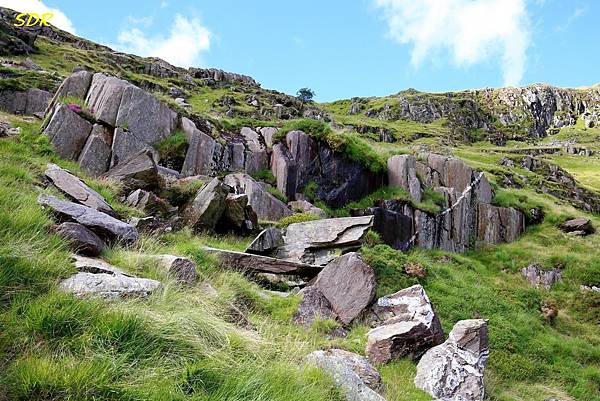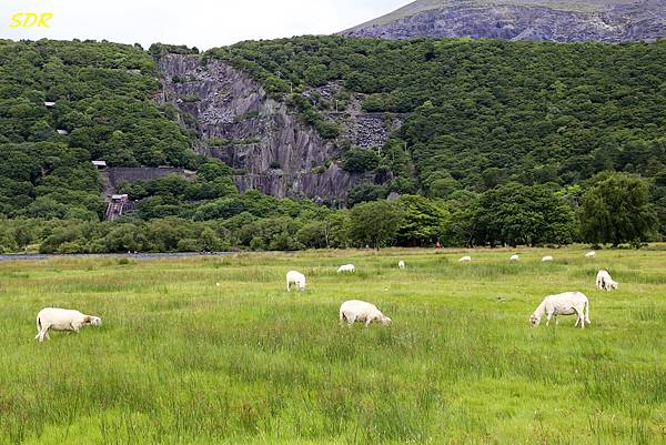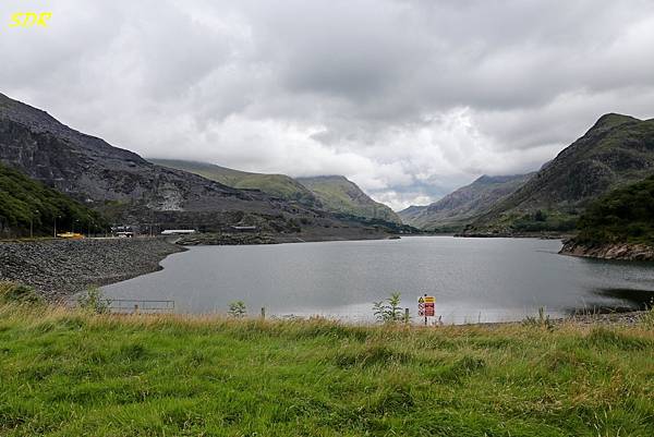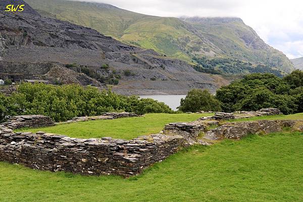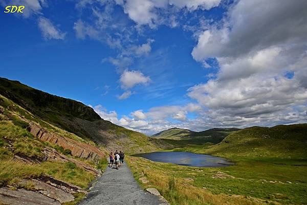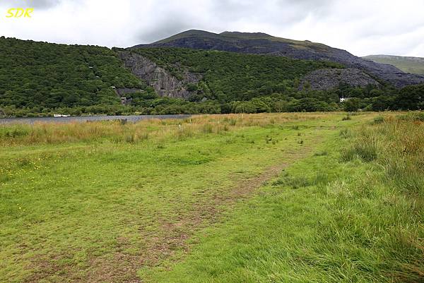 草原已經被踏出一條步道,北臨Padarn湖。湖邊的山丘,有部分山壁已被開挖的露出岩層。因為蘭貝里斯以前是威爾斯的採石場,現在雖已經禁採,但過去人類破壞自然環境的舉動,也為大自然處處留下斧鑿的遺跡。