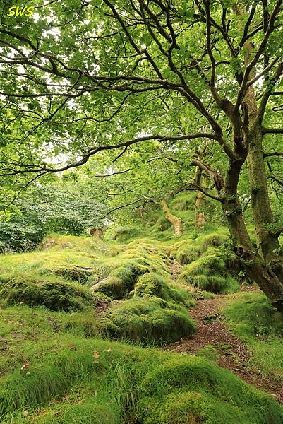 到城堡的小徑有一點坡度,但走起來還算輕鬆。沿途茂林成蔭,地面上的石塊覆蓋著苔蘚,舉目所見,一片綠意。