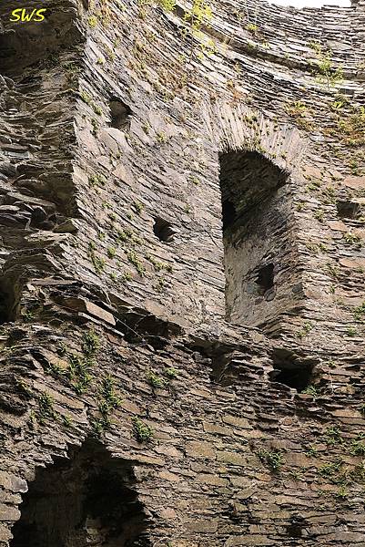 石壁上有一些眺望洞和弓箭發射口,城堡的建築素材就是當地盛產的石板。