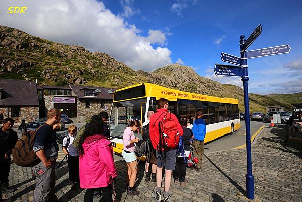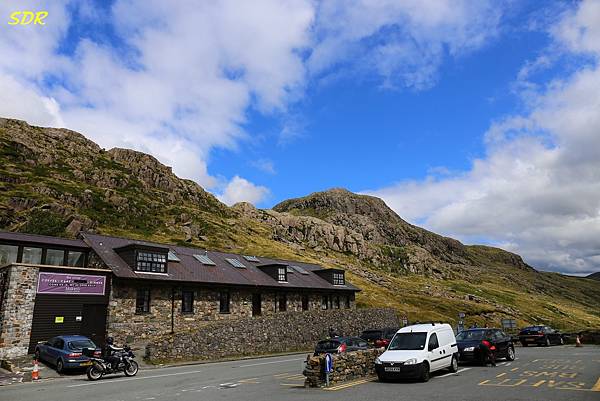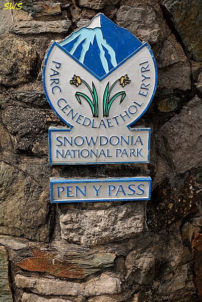 巴士站旁有一個小小的旅客服務中心,石牆上有個雪墩國家公園的標誌,下面的Pen Y Pass是這裡的地名。
