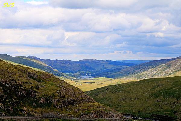 行經至此,離巴士站已經不遠。遠方山谷地勢較低,過了湖就是Betws-y-coed。