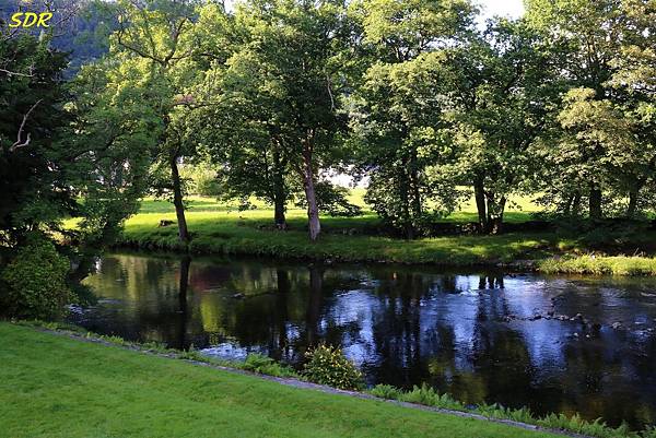 教堂前的馬路是Betws-y-coed最熱鬧的大街,從教堂沿著馬路往上走,不多久就會發現這一段馬路是沿著Afon Llugwy闢建,Afon是英文的River,所以Afon Llugwy就是Luugey河的意思。接近市中心的這一段,水流平緩、清澈,兩岸青草、林木蔥鬱。